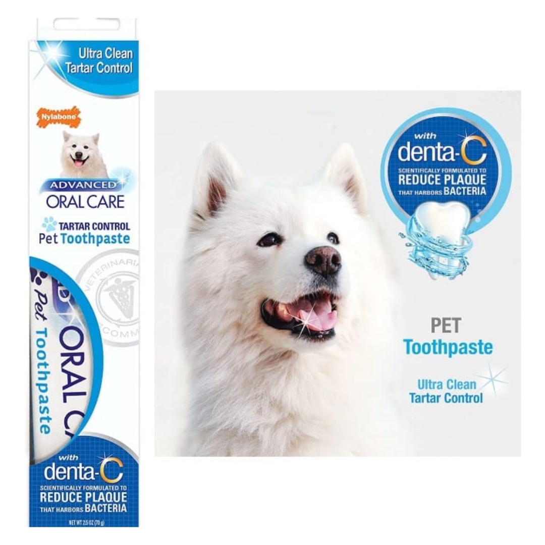 Our Nylabone Advanced Oral Care Toothpaste makes preventative dental care easy & enjoyable for your furry friend. Just a few minutes of brushing each day can make a significant difference in your pet's long-term oral health. There are no artificial additives, just wholesome ingredients that work. Plus your dog will love the natural allergen-free peanut flavour!