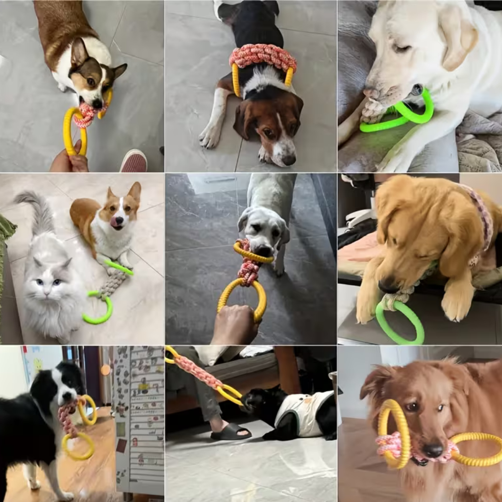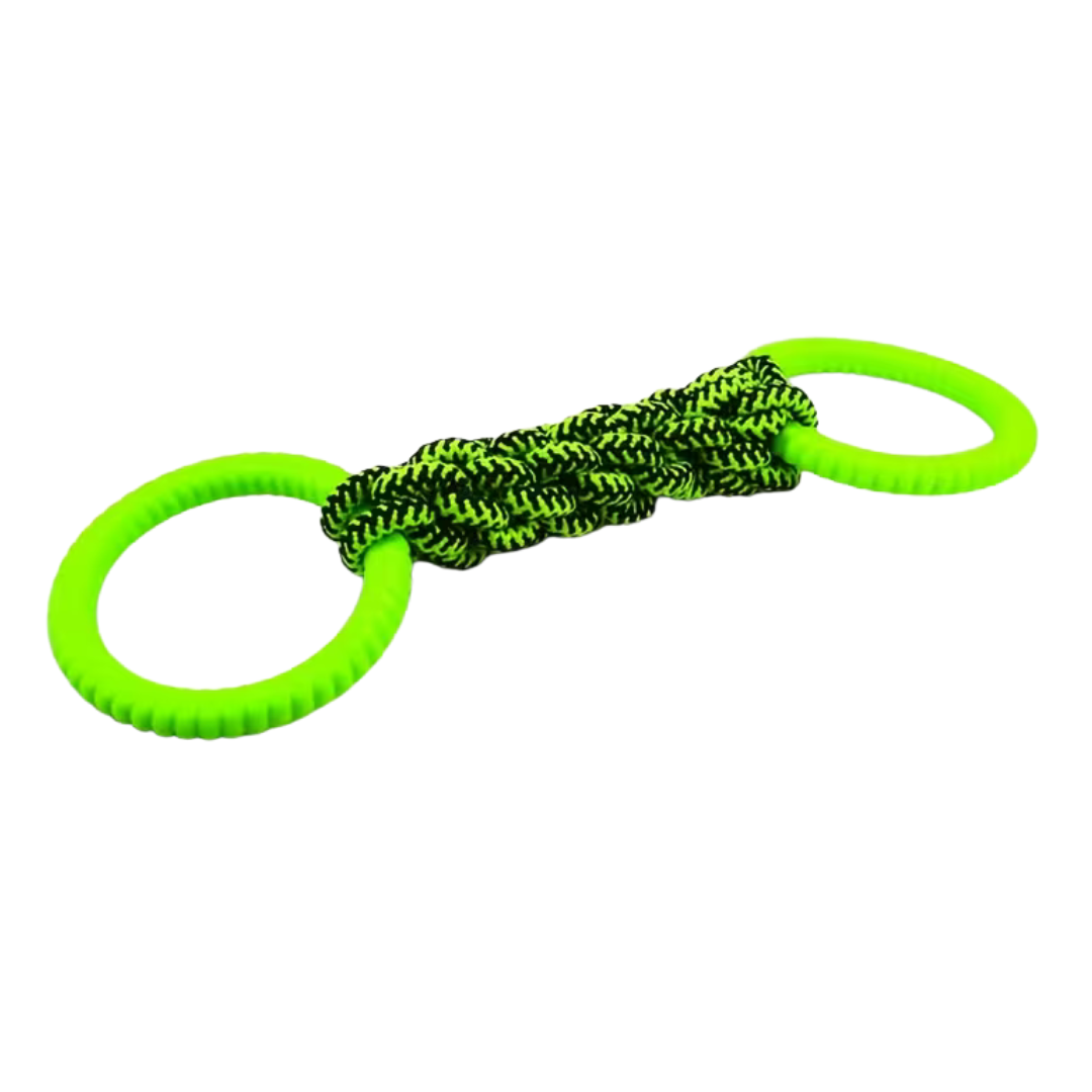 Flexi Rubber Ring & Rope Tug Dog Toy- Large - Green is backordered and will ship as soon as it is back in stock.